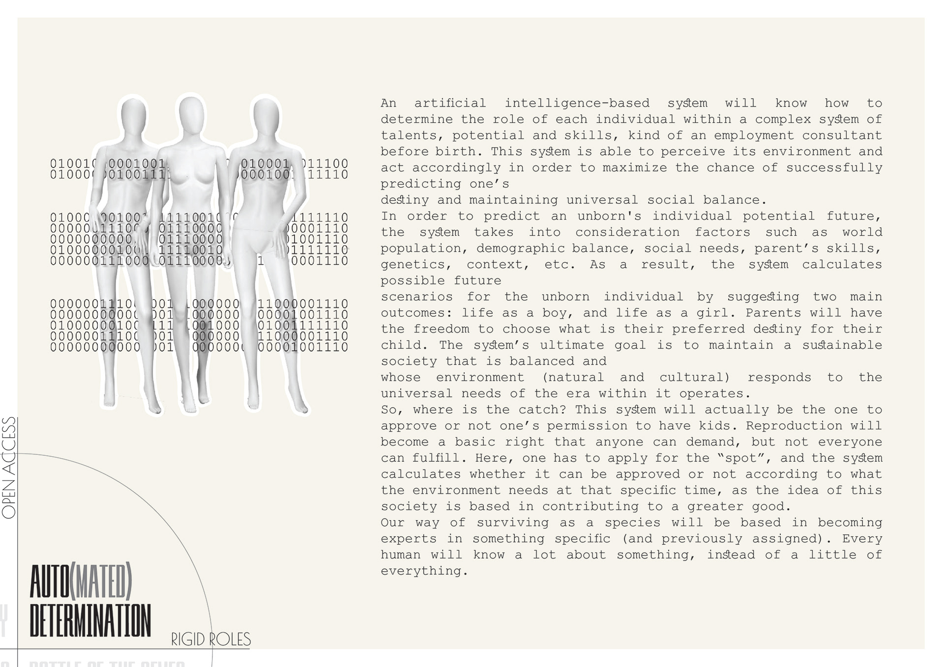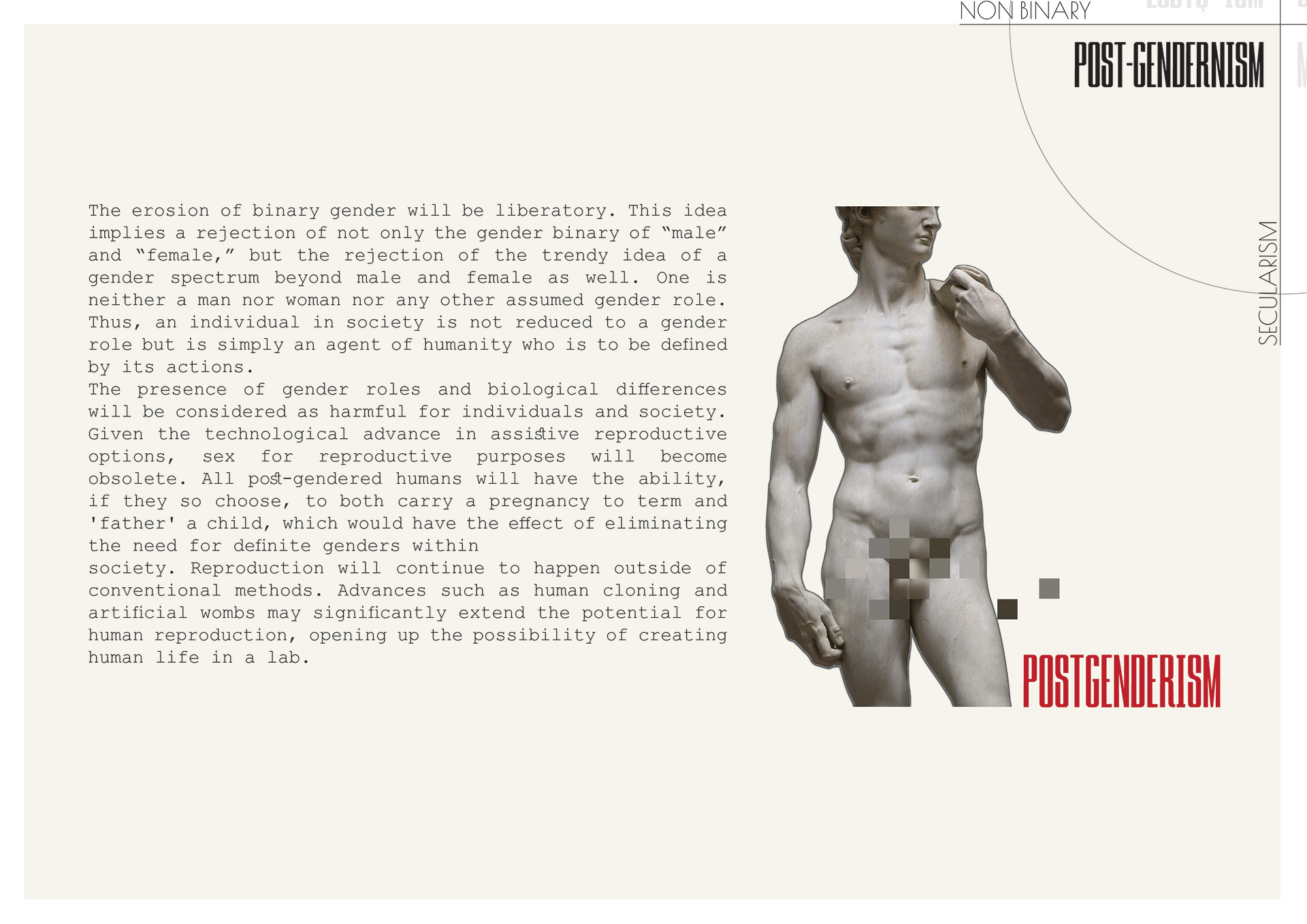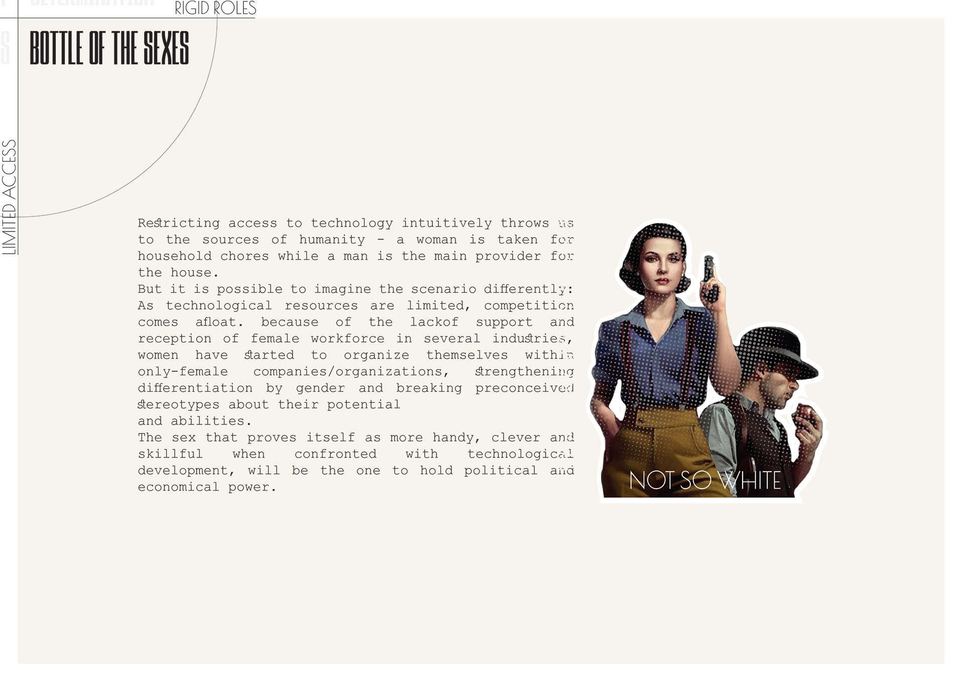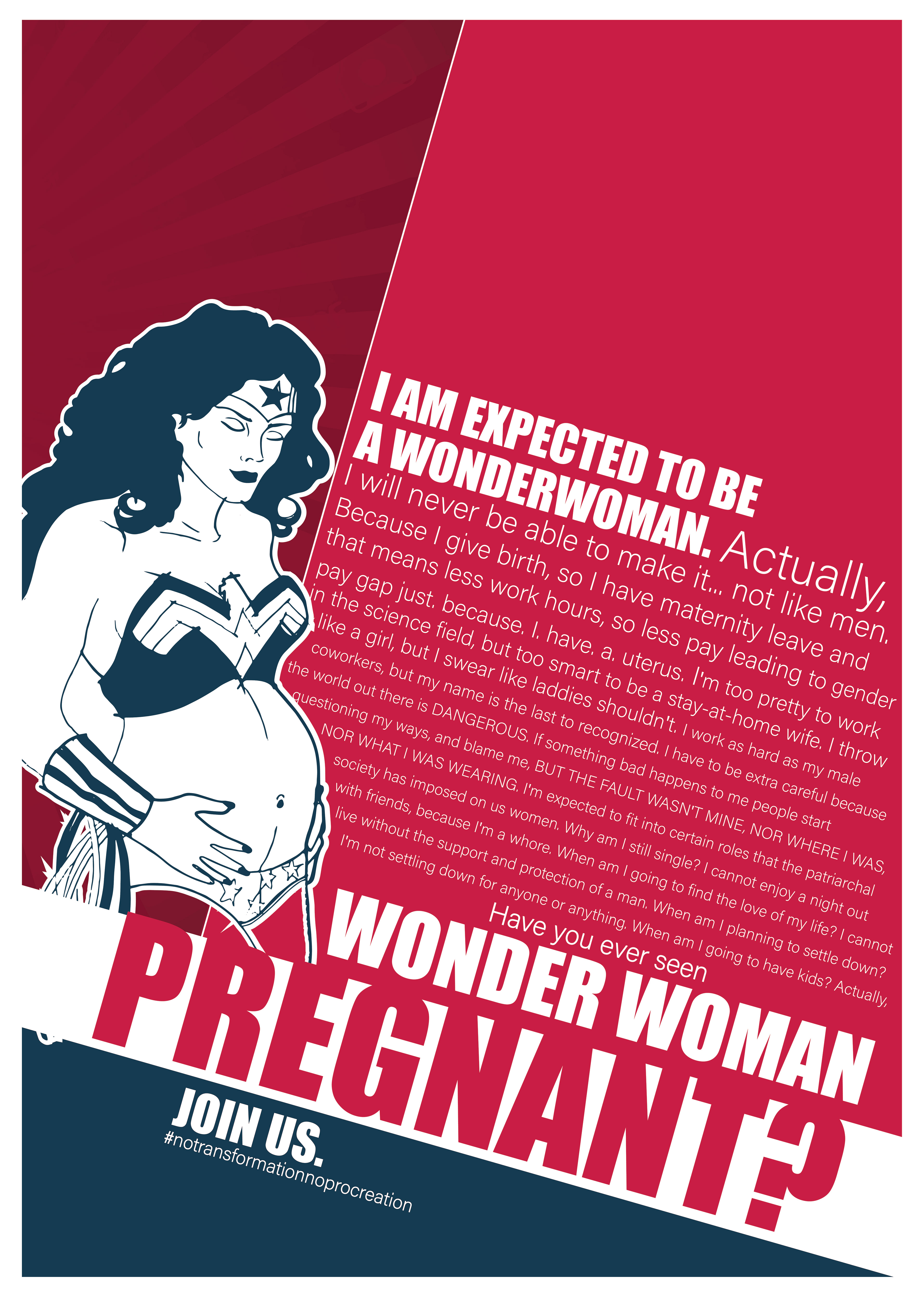 Feminists organized worldwide, and an anti-procreation strike took global reach. Women decided to stop procreating until real progress and change would be made in terms on the installment of gender equality and feminist ideals. Feminist stood behind the idea that biology shouldn't determine the roles attributed to women and men. If sexed bodies were about nature, gender was about culture, about the ways different cultures attributed meaning to those sexed bodies. It became clear: the root cause and major contributing factor to gender inequality and its link to women’s participation in the workforce was reproductive rights, bodily autonomy and reproductive choices.