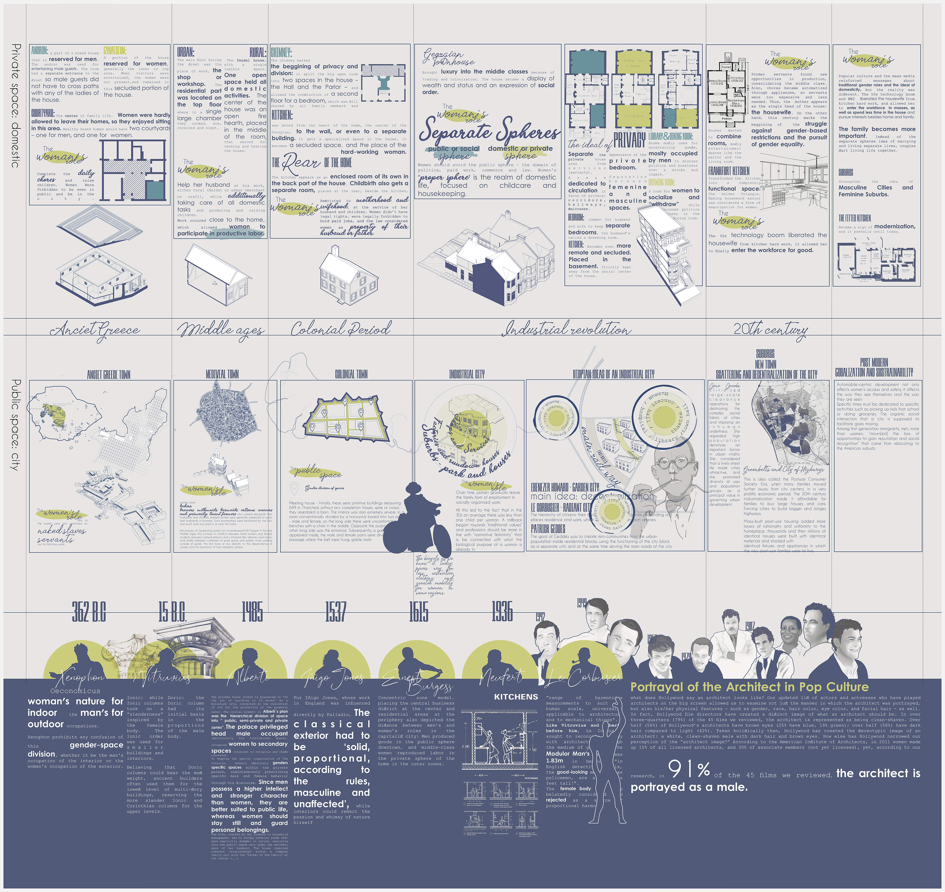A timeline of gender mobility expression in architecture in different periods.