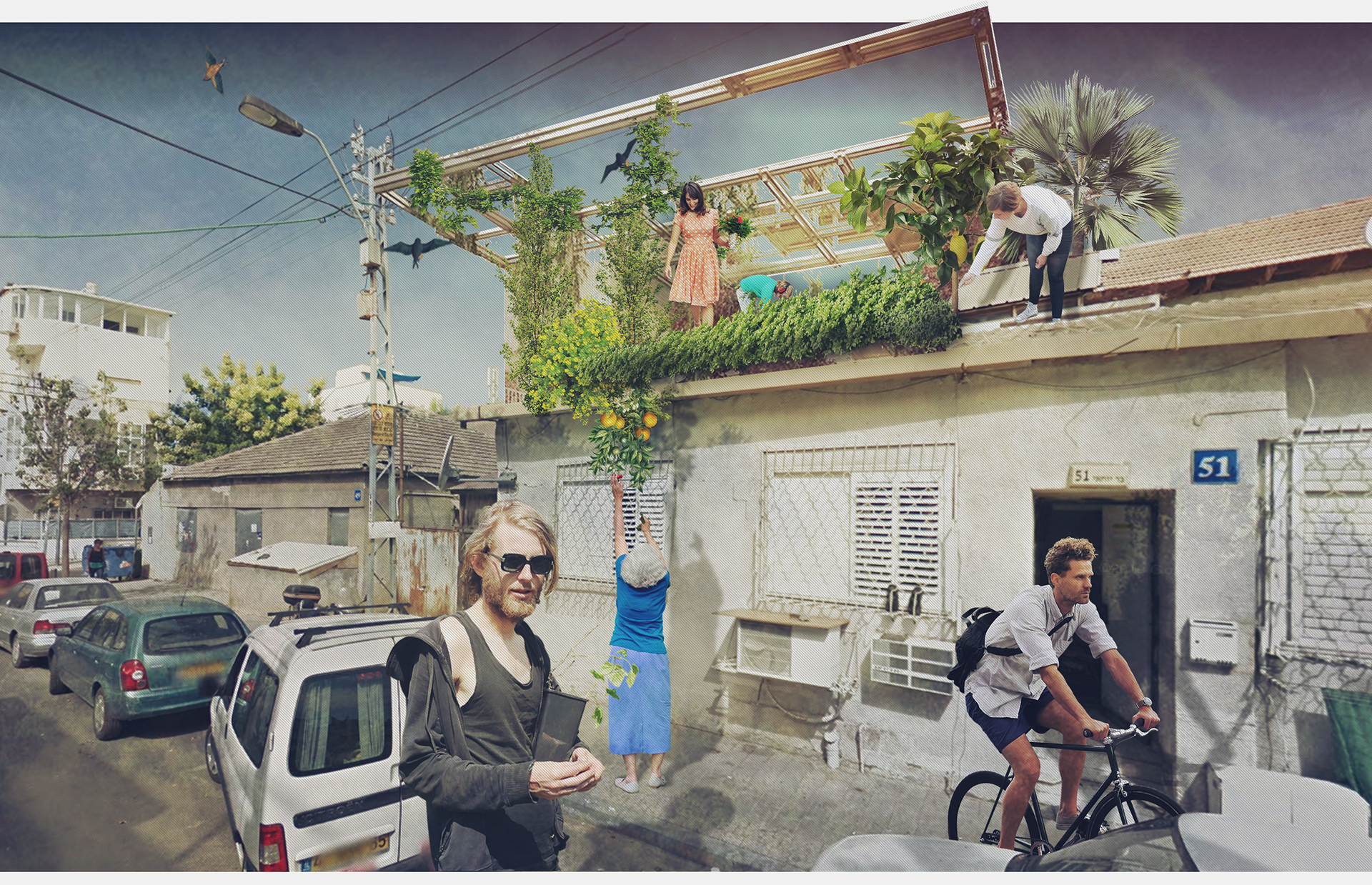Conceptual Collage on Urban Agriculture - Shapira Neighborhood - Tel Aviv, Israel.